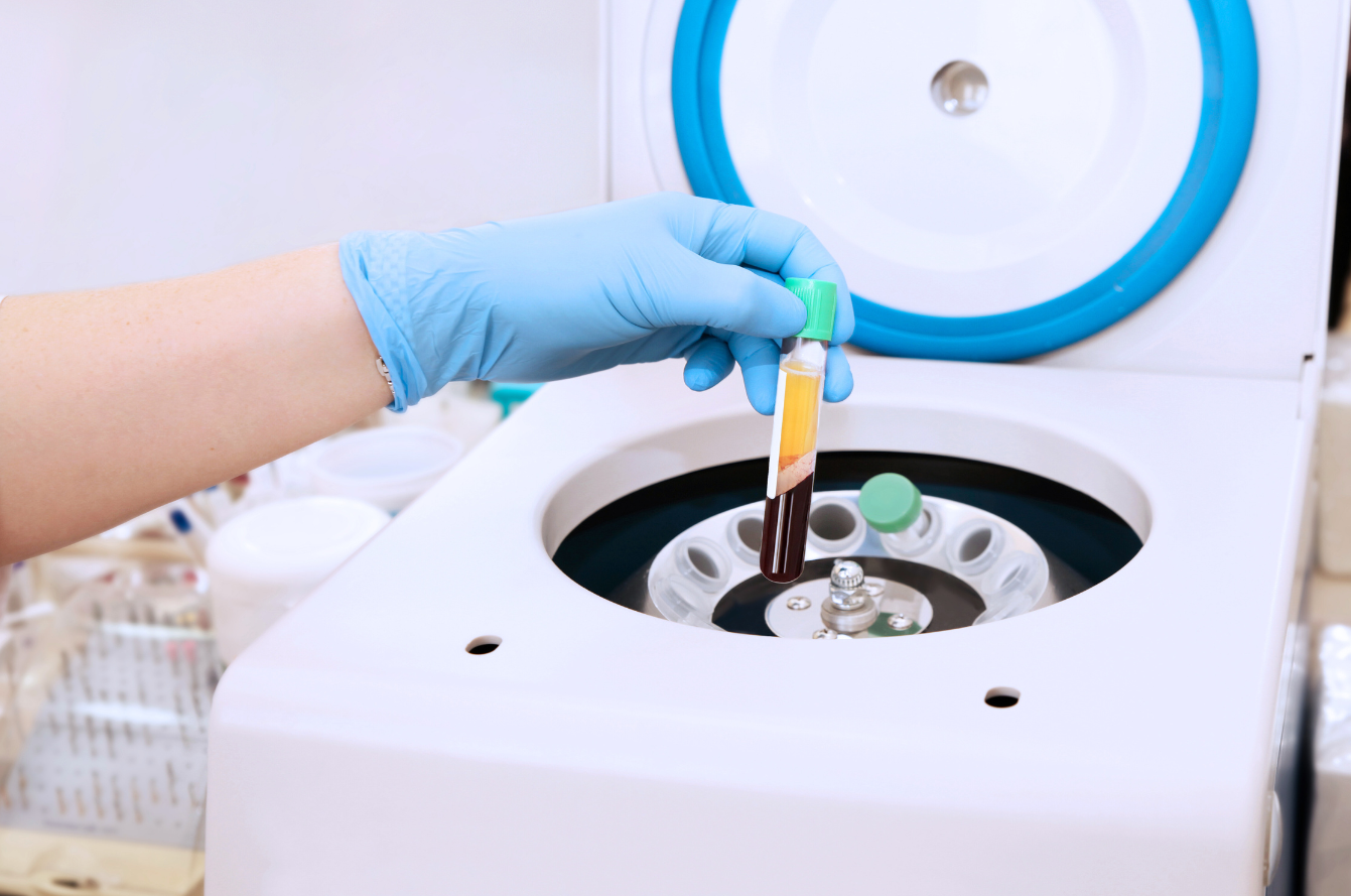 sample of your blood is drawn and placed in a centrifuge, which separates and